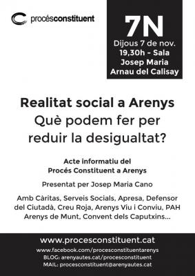 Acte informatiu del Procés Constituent d'Arenys: Realitat Social a Arenys el proper dijous dia 7 de novembre a les 19.30h a la Sala Josep Maria Arnau del CC Calisay.