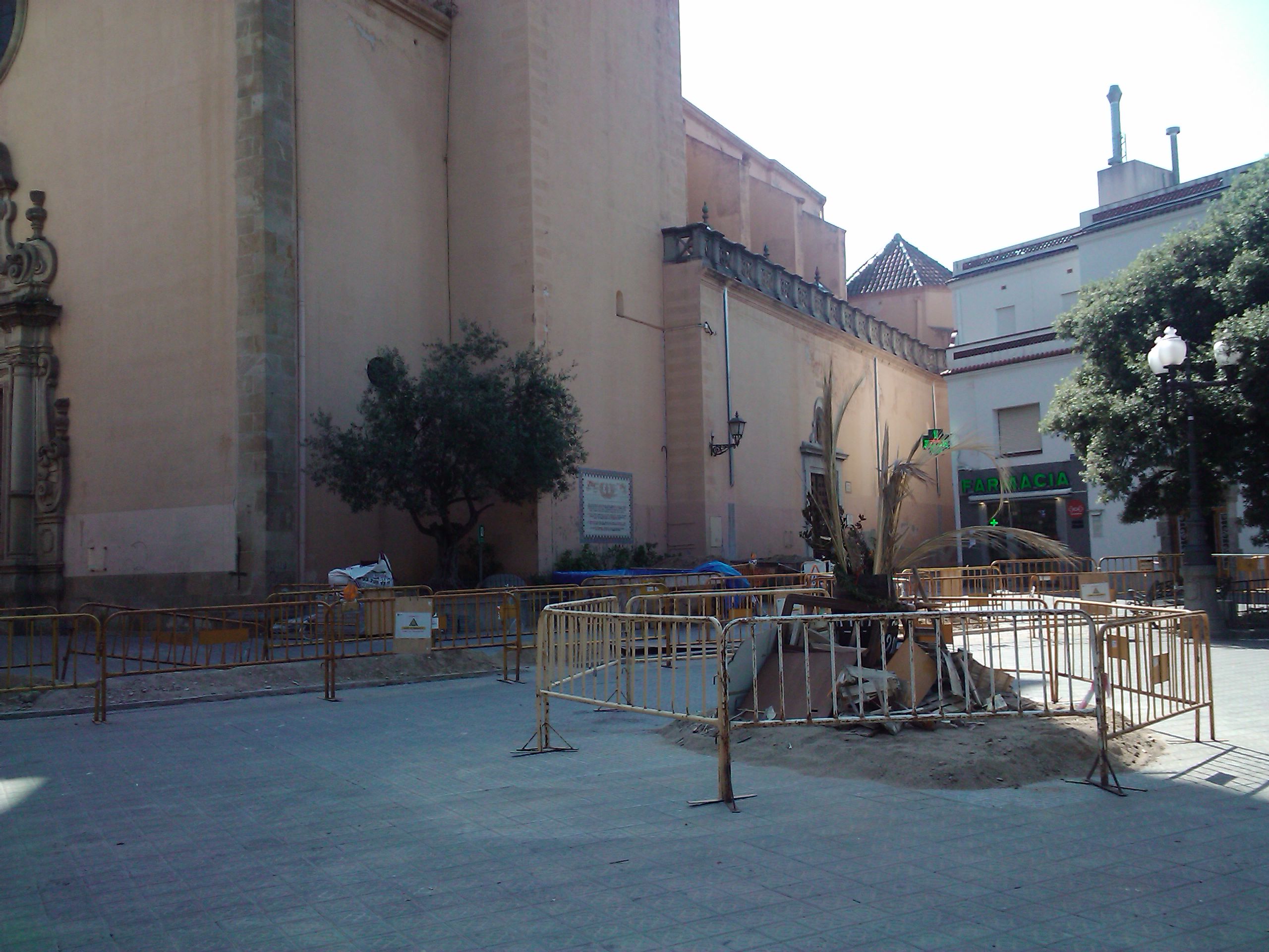 Estic indignat. Avui, dia de Sant Pere, dia que cremarem la bota, dia que commemorem la consagració del temple parroquial tenim la Plaça de l'Església feta un desastre. Tenim l'escenari impresentable.