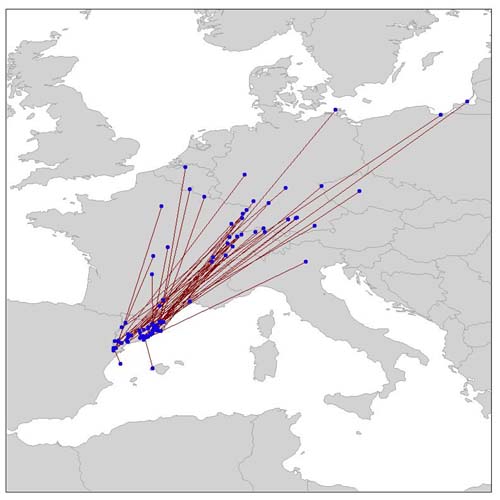 La població és sedentària amb superposició d'exemplars en pas o hivernants. De les darreries d'octubre fins a començaments de març, s'aprecia un augment en el nombre de merles. Són migrants que arriben d'Europa.