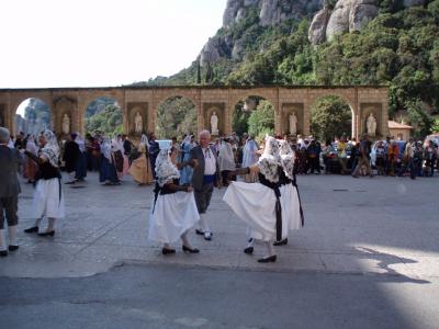 l'Esbart Maragall ballant una de les seves danses devant del Monestir de Montserrat.