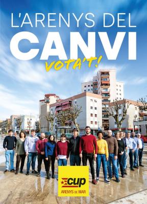 Per això la CUP vol entrar a l'Ajuntament de la mà de tothom, perquè tots tinguem consciència que som part implicada i responsable del funcionament del nostre municipi. Que entre tots ho hem d'aconseguir, perquè és cosa de tots i no de 17 persones que durant 4 anys ocuparan unes cadires de molta responsabilitat i compromís. La gent és agradable i amable, però vol canvis reals per millorar la vida del nostre Arenys, i nosaltres estem convençuts que amb la CUP ben forta ho podrem aconseguir!