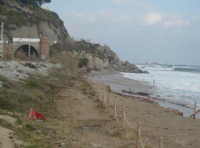 Fa anys, molts anys, que anem reivindicant que s'arregli aquest camí que avui dia es troba tallat, havent de fer alguna imprudència, si vols arribar al final. Antigament, baixant fins a la platja aconseguies travessar la muralla que representa el túnel del tren, però això ja fa molts anys que no és possible.
