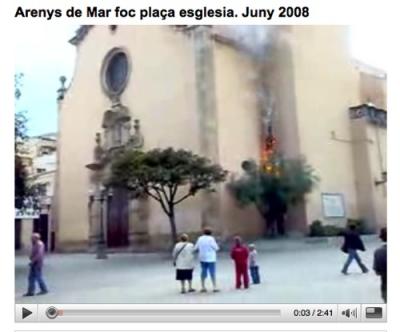 Dijous a la tarda, en uns minuts va quedar completament cremat el xiprer del costat del campanar.