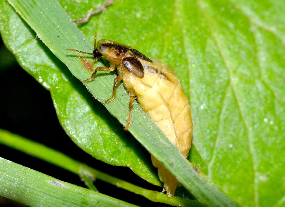 Doncs fa dos dies passejant de nit per l’estany de Can Torrent (Tordera), vaig trobar el que feia anys que no veia, una femella de cuca de llum (la de la fotografia del gènere Lamprohiza). A les cuques de llum el mascle i la femella són molt diferents, en algunes de les 11 espècies descrites a la Península Ibèrica, semblen pertànyer a espècies diferents. La femella té l’abdomen molt gran, i molt poques hores després d’haver fet la metamorfosi, ja emet llum per atraure al mascle i fecundi els seus ous. Aquesta no té ales, pel que la seva capacitat de desplaçar-se és limitada. Per contra el mascle té ales i es desplaça frenèticament per trobar una femella i copular amb ella. Aquests curiosos coleòpters (escarabats) s’alimenten de cargols, sobretot les seves larves.