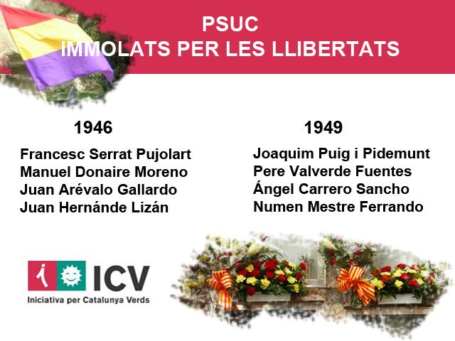 Com tots els anys i conjuntament amb els seus familiars i l'Amical, el diumenge 15 tindrà lloc l'acte homenatge a la memòria dels nostres companys del PSUC Francesc Serrat (Cisquet), Manuel Donaire, Juan Arévalo, i Hernández que foren afusellats el 28 de febrer de 1946 i dels companys Joaquim Puig i Pidemunt (Director de Treball), Pere Valverde, Àngel Carrero i Numen Mestre, afusellats com els altres, al camp de la Bota, el 17 de febrer del 1949, com també, a la de tots els que foren immolats per la llibertat durant la dictadura.