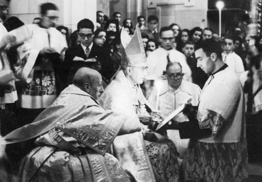 El 31 de març de 1946 -es compleixen doncs 70 anys- eren beneïdes quatre campanes que havien de substituir les que deu anys abans havien estat destruïdes a l’església parroquial i a la capella de la Pietat. Beneïdes pel bisbe de Girona, Dr. Cartañà, cadascuna tenia els seus padrins i tenen el seu nom propi. En sabeu algun? (Fotografies de les col·leccions de l'AHFF, d'autor no identificat.)