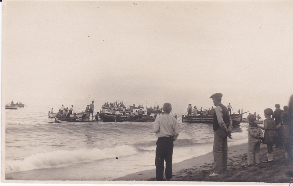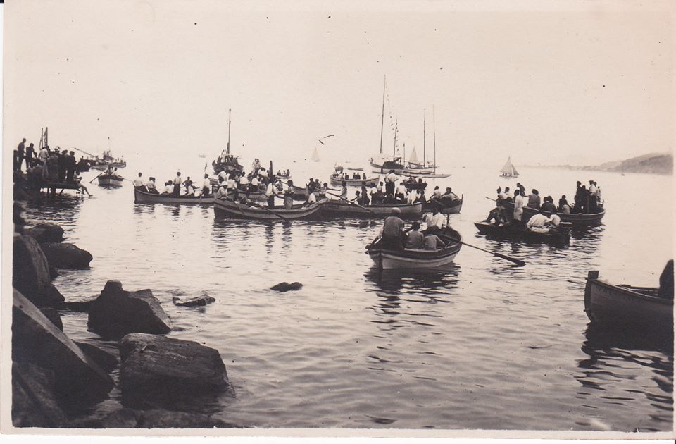 "Grandes regatas de remo y vela" així s'anunciaven al programa de Festa Major de 1929 les competicions organitzades pel Club Mar Sport el 13 de juliol de 1929 just entre la platja i la nova escollera del port. A la fotografia que l'acompanya s'hi poden veure diverses embarcacion, molt de públic i els velers al fons.