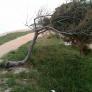Ja arribem a la desembocadura del rial i hi veiem una mena de joncs (foto 11). Aquí hi trobem altres curiositats, una figura espectacular que fa un pi castigat pel vent (foto 12). N'hem trobat d'altres durant el camí, alguns que ja són morts.