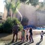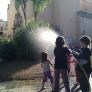 Aquesta tarda hi ha aparegut una fantàstica illa, d'aquelles típiques dels dibuixos de nàufrags solitaris. L'Edmon, que ja enllestia la seva creació, s'ha trobat amb l'ajut multitudinari de tota la canalla que arribava a la plaça a jugar. I la manega ha acabat ruixant a tothom.