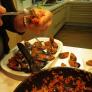 Fem els musclos al vapor amb una llimona oberta dins la cassola, quan estiguin tots oberts retirem la carn i la trossegem ben petita, reservem juntament amb les closques.