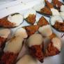 Agafem el musclo farcit, el passem pel ou i desprès per la farina de galeta ( pa rallat ), i ràpid de boca avall mateix a la paella uns segons, quan estigui daurat, fora!!!