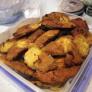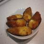 Posem a escalfar bastant d’oli en una paella, en un plat batem els ous amb una mica de sal i en un altre plat i posem farina de galeta.