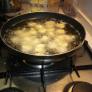 Amb la massa compacta comencem a fer boletes amb la ajuda de dos culleres de postra i les fregim a la paella amb oli bastant calent i abundant.