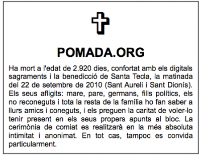Rafel, tu sempre mantenint el costat més digital de Pomada. Aquest "tanatori virtual" és un lloc ideal per a pregar per aquesta ànima en pena.