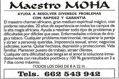 africano MOHA y después de pagar el pastón que me pedía, empezó a revolotear a mi alrrededor tirándome bocanadas de humo de no se que cosa. Después de un buen rato