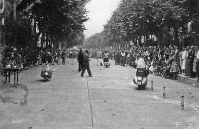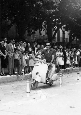 El nostre company Camil, ens ha passat varies fotografies dels anys 1958 i 1959 on surt ell amb la vespa fent curses d'obstacles i fins hi tot mostrant un dels trofeus aconseguits en una de les competicións.