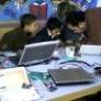 Desprès de moltes peripècies que demostrant la meva imperícia, he pogut incloure la fotografie. Veieu a dos alumnes amb una professora, dos safates de truita de mongetes una i coca de llardons l'altra.