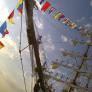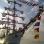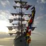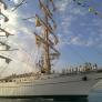 Des de l'entrada al port de Barcelona tota la tripulació anava enfilada a les vergues alhora que cantava l'himne de Mèxic. La goleta és una explosió de color, centenars de banderoles contrasten amb les blanques veles. Les entrades i sortides dels ports son espectaculars. La professionalitat dels mariners és impecable.