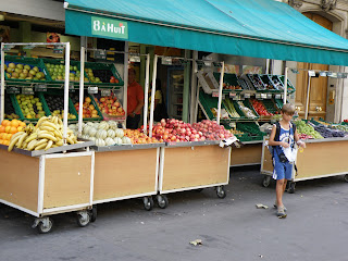 Morts de gana, trobem una boulangerie i ens comprem pizza, quiche, postres i pa de neu. Les pastisseries a França no son tant cares com les d'aquí, i les pastes tant dolces com salades, son realment delicioses. Per que us en feu una idea, un tros de pastis et pot costar un euro amb cinquanta, mentre que el cafè fer acompanyar-lo te'n pot costar tres. No en recomanaré cap en especial per que totes son més que acceptables.
