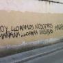14. Al final del carrer de la Perera, a tocar de la nova plaça. hi ha des de fa uns mesos una pintada monumental que llueix la llegenda "Hoy lloramos nosotros, mañana llorara nuestras madres". Com sigui que la brigada és molt ràpida a esborrar pintades, preguntem si s'ha previst també d'embellir aquesta mur.
