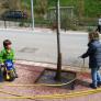 D'altra banda, reprenent la feina a la façana que vam fer l'any passat, hem col·locat un altre tensor perquè els gesamins continuïn creixent i embolcallant de verd el camí cap a l'escola. Hem donat feina als més petits, que han fet "cassoleta" als arbres del pati, perquè creixin bé i facin una bona ombra quan tornin els mesos de calor. Ells també han estat els encarregats de regar-los, els de dins de l'escola i els de fora, que creixen més ufanosos des que s'han integrat en els torns de reg per part de l'alumnat.