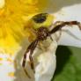 Aquesta és una primavera molt plujosa, i són pocs els dies i moments que el Sol escalfa prou per als petits invertebrats de sang freda. És en les hores de Sol i més calor que podem observar l'aranya Napoleó (Synema globosum). Aquesta és una aranya peculiar pel fet que no teixeix cap teranyina, com és conegut en moltes espècies d'aranyes, si no que roman amagada en una flor i espera les seves preses. Quan un insecte pol·linitzador arriba a la flor a alimentar-se, aquesta l'atrapa amb les quatre potes del davant (recordeu que les aranyes en tenen vuit), i ràpidament l'inocula verí amb els quelícers (apèndix anteriors al voltant de la boca) i mata a la pobre i sorpresa víctima. Deprés com que les aranyes no poden "mastegar" el seu aliment, xucla els fluids interns de la presa, que el seu verí ja a ha començat a digerir.