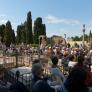 El diumenge 12 de maig, al Cementiri d’Arenys de Mar vam poder escoltar els 30 poemes de Cementiri de Sinera meravellosament dits per la Gemma Sangerman i acompanyats pel clarinet de l’Oriol Romaní, que va anar des de la interpretació més senzilla fins a alguns moments jazzístics. Davant l’ermita de la Pietat, i molt a prop del lloc on reposa Salvador Espriu, la veu de Gemma Sangerman va resseguir el poemari que no podia trobar un marc més adequat per ser dit i escoltat. Com ella mateixa comentava després de l’acte, les paraules li fluïen amb facilitat perquè ho tenia tot davant seu: un tros de mar retallat entre xiprers. D’allà n’anaven sortint el carro, les vinyes, els rials, les barques. El punt de vista dels assistents era un altre: la campana de l’ermita, les escultures dels panteons, els Tres Turons i també els xiprers. Ni les abelles que rondaven pel recinte, ni el xut tímid de la pilota d’un nen, ni les preguntes que se sentien al fons sobre la ubicació exacta de la tomba de Salvador Espriu, no van aconseguir trencar la concentració i emoció dels assistents.